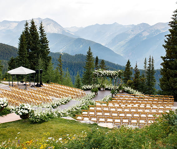 Gondola fees may apply for your guests and prices may range depending on time of ceremony. Wedding coordination by GRO Floral Event Design. Floating three miles above the town of Aspen but just steps from The Little Nell our Wedding Deck is a mountain venue unlike anywhere else in Colorado.